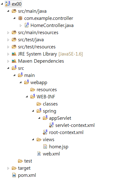 2. 예제 프로젝트를 생성후 기존 설정 파일인 xml 파일을 삭제합니다. 대상은 'web.xml, servlet-context.xml, root-context.xml' 입니다.