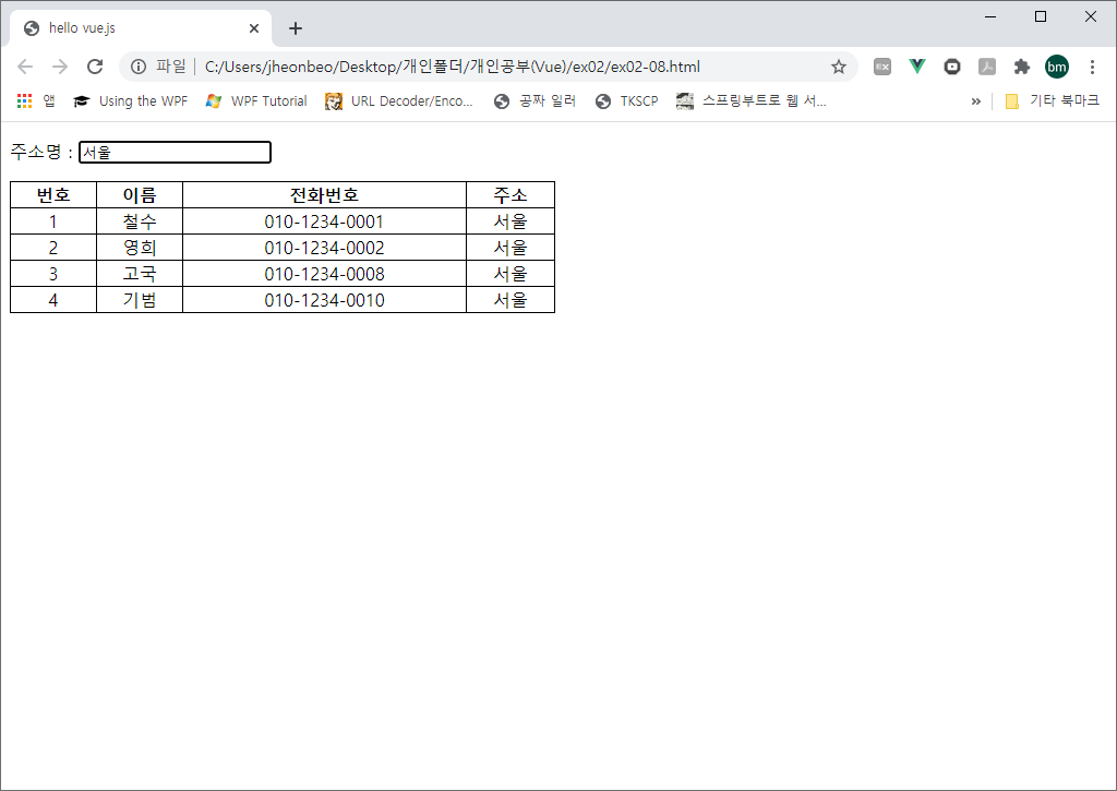 주소명을 입력하게 될 필드는 v-model을 이용해 양방향 바인딩을 함으로써 addreeName에 즉시 반영되고