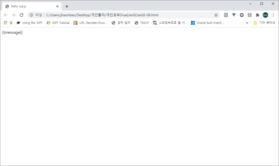 v-pre를 사용하지 않았다면 message 속성의 값이 바인딩되어 나타나겠지만