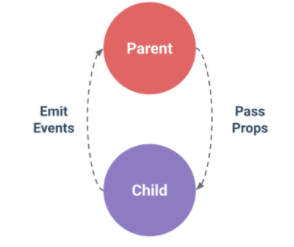 부모는 props를 통해 자식에게 데이터를 전달하고 자식은 events를 통해 부모에게 메시지를 보냅니다.